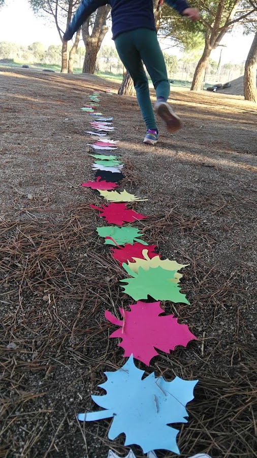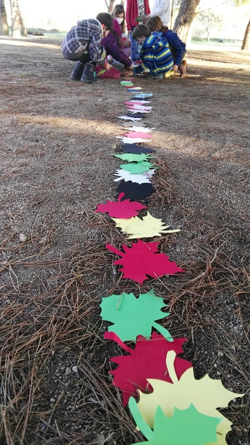 Este es un ejercicio que me gusta repetir. Y es que La inspiración de este artista por la tierra; Andy Goldsworthy esta siempre presente. Una idea para reconectar con la naturaleza, para movernos o clasificar como lo fue en este caso. Los niños creaban un patrón por colores claros y oscuros generando linealmente una excusa para la provocación y el juego. Desafíos que ellos mismos pedían sobre la frontera creada. Una experiencia estética y de juego en la que se explora el territorio y el arte es motor para el juego. Esta actividad es realizada con niños de primaria. Pero ha sido siempre un gran eje en la educación infantil. Proporcionando libertad, y la idea de que el arte puede estar vivo y presente en nuestra cotidiana acción docente.