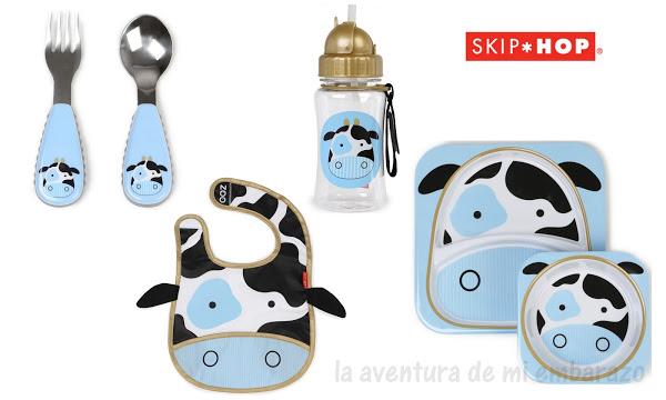 Para completar la gama además un preciosa vajilla Skip Hop Zoosets con todo lo necesario para convertir la hora de la comida en un momento divertido. Plato y bol de melanina apta para el lavavajillas, cubiertos con empuñadura suave de fácil agarre y acero inoxidable, vaso de aprendizaje en versión botella con pajita flexible y tapa elevable, babero ligero, resitente al agua y de fácil limpieza que se guarda sobre en su propia funda... Lo dicho, ¡más práctico imposible!