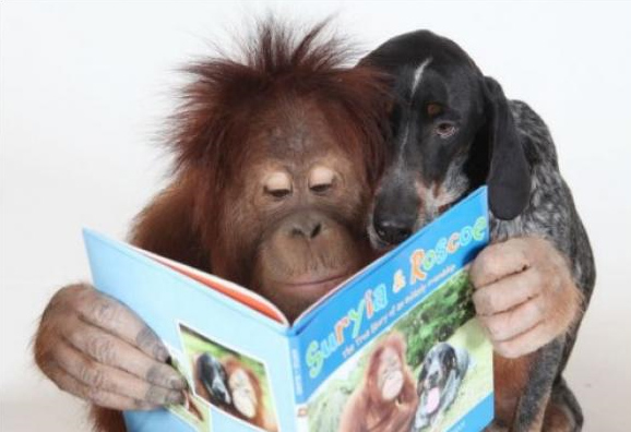 ¡Y que mejor manera de hacerlo que mostrando imágenes de animalitos con algo que leer entre sus patitas!