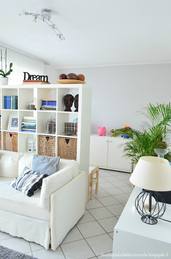 Nos dio la locura de pintar todo de blanco, escritorio, mueble de la televisión, cambiar de cortinas....todo blanco, blanco, blanco.....