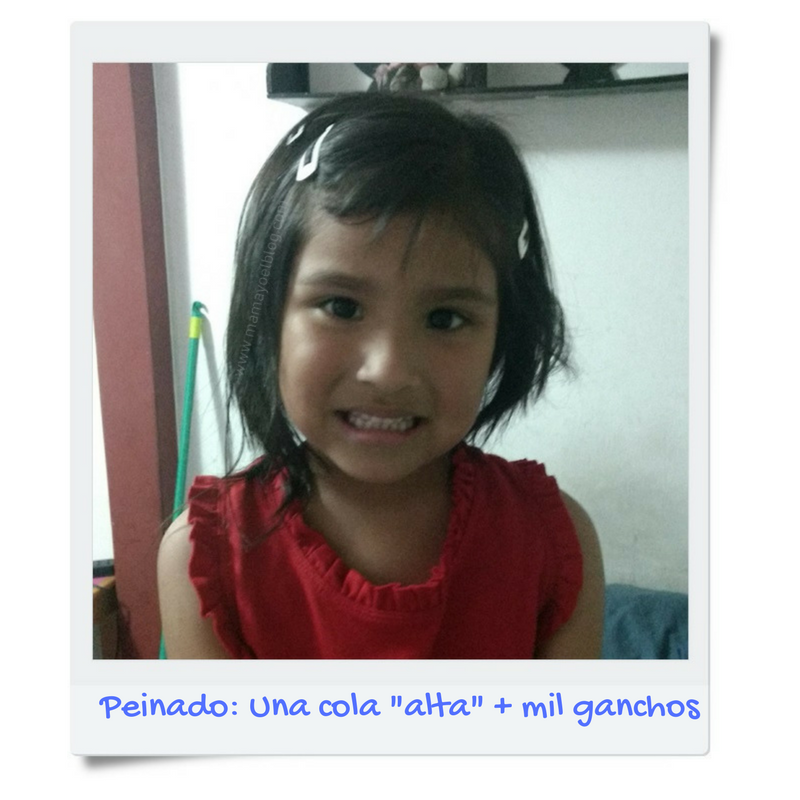 Ya no podía hacer nada. Teníamos que salir, faltaba poco para su cumple (felizmente que al final decidí no hacer nada). Igual las respuestas no importaban, el final era el mismo: ya no podía hacer nada. No podía retroceder el tiempo, tampoco podía pegarle el cabello otra vez. Entré a tratar de peinarla pero no podía. No importa lo que hacía, igual se le salía en cabello por todo lados. Cola ,media cola, trenza, pelo suelto, daba igual. El cabello salia descontrolado por todos lados. Volví a salir histérica y más molesta que cuando la encontré. Era domingo a las 4 de la tarde, no iba a encontrar una peluquería. Solo me quedaba calmarme y seguir nomas.