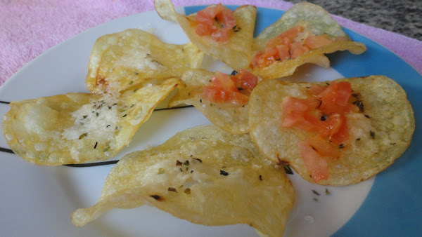 Mari Recetas nos sugiere unas PATATAS CHIPS PIZZEADAS, fácil y original, una forma diferente de comer las patatas chips.