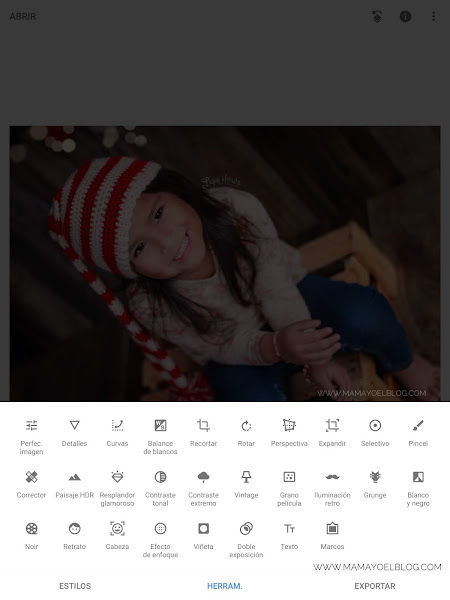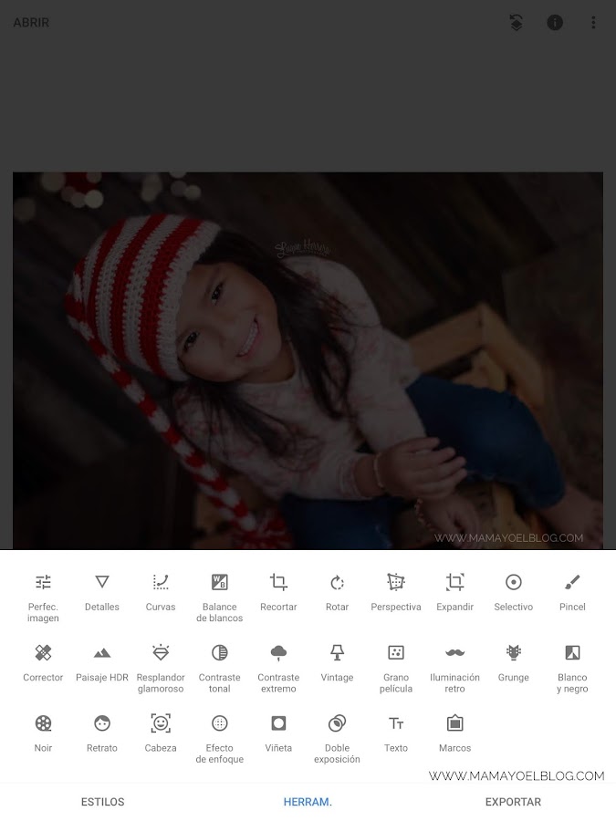 Esta también es una de mis favoritas y la que más estoy usando actualmente. Tiene diferentes filtro super lindos. Además puedes mejorar la imagen con lo que la app considera deberías corregir. Puedes colocarle texto y tiene muchas opciones para darle efectos y darle una vida distinta a tus fotos. Puedes seleccionar la opción "retrato" para resaltar el rostro de una persona. "Grunge" le da un tipo de efecto como fotografía antigua y gastada que últimamente está muy de moda para las imágenes. Puedes remover manchas, desenfocar y darles efectos especiales solo a algunas partes de la foto.