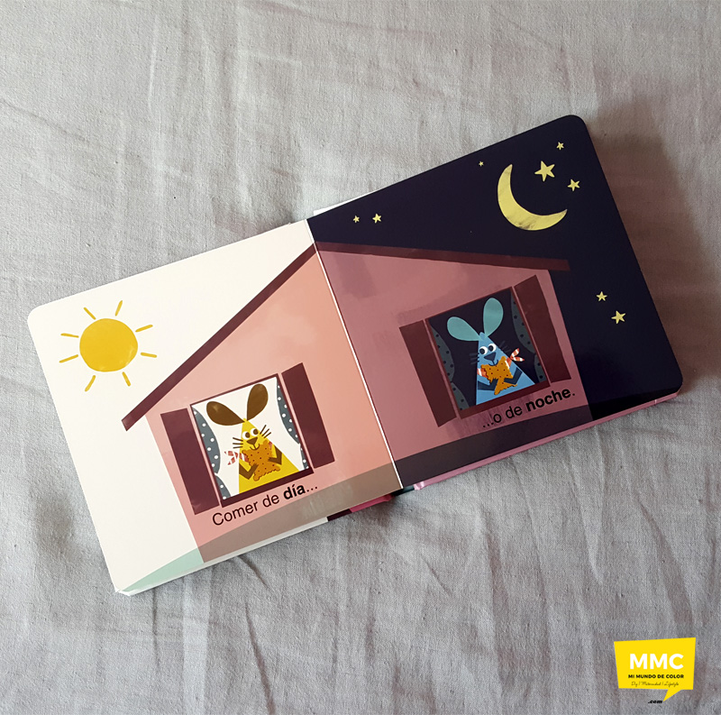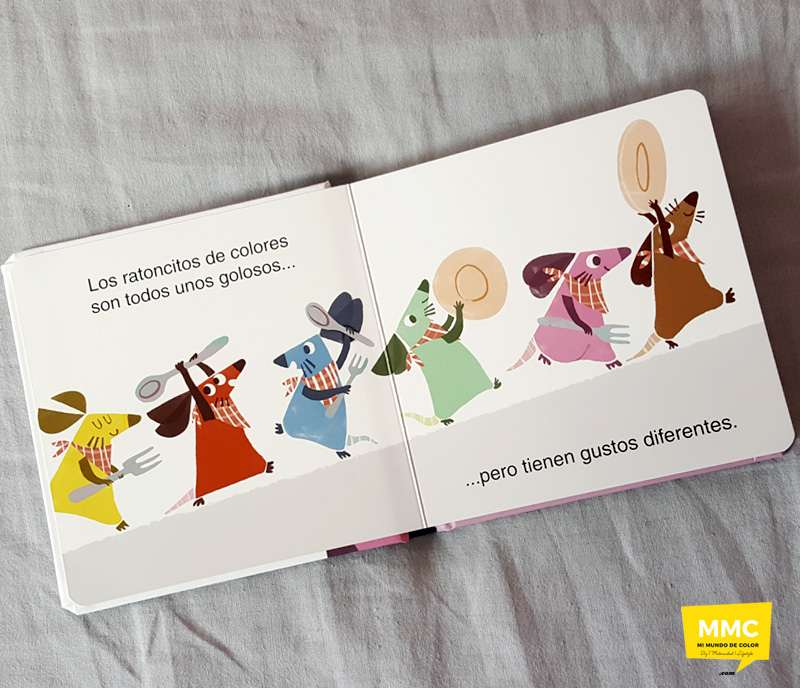 Contrarios es el libro mas nuevo de esta colección y a través de todo el libro los niños y niñas van a prender a diferenciar conceptos básicos como, "grande o pequeño", "delgado o grueso", "lleno o vacío". Con unos simpáticos ratones de diferentes colores muy golosos pero con gustos muy diferentes. En cada pagina un ratón come de una manera diferente al otro. Y lo único que hacen por igual es ir a la cama a dormir por igual. Esto me viene genial porque la mayoría de las veces lo leemos de noche cuando mi nena va a dormir.