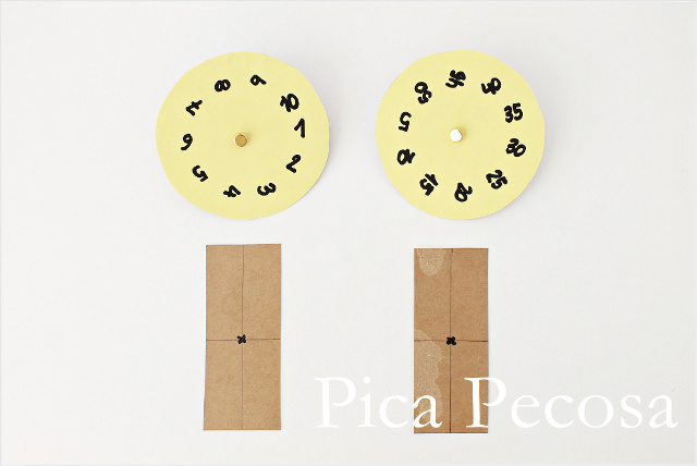 - Los dos círculos son las ruedas donde irán dibujados los números que se verán por las ventanitas de la tapa.