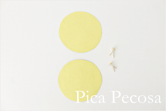 # Paso 2: Forrar con papel de colores una cara de los círculos y pasarles los encuadernadores en el centro: