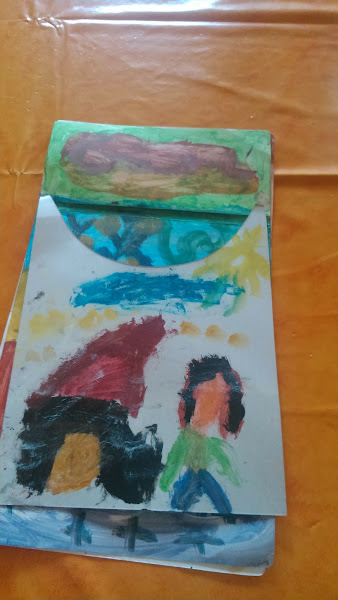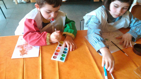 Hace ya tiempo que a mis peques les gusta esto de pintar con acuarelas, la mayor ya sabe mas o menos lo que hace, pero el pequeño es mas de mojar la brocha y destrozar el papel de la cantidad de agua que echa sobre el, pero tampoco puedo pedir peras al olmo, ya que tiene dos añitos y no ha ido nunca a guardería.