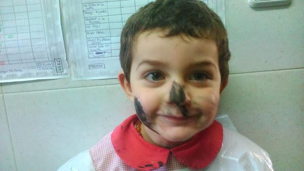 Y sino mirad esta foto de mi peque cuando empezó con la acuarela negra...