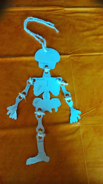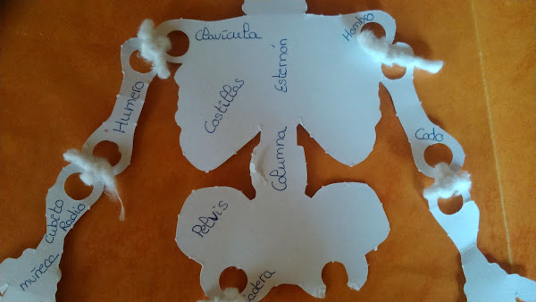 Como había poco espacio para escribir como se llamaban los huesos poníamos en un brazo el nombre de los huesos principales y en el otro las articulaciones, y lo mismo hicimos con las piernas, en una pusimos los huesos principales y la otra las uniones entre ellos.