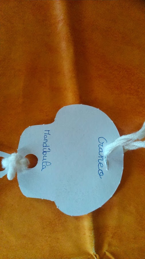 Pero un día se me ocurrió, que podíamos apuntar por la parte de atrás como se llaman cada uno de los huesos.