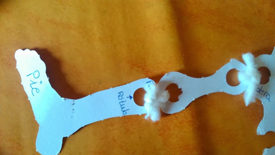 En cada hueso ya venían los agujeros para poder unirlo al siguiente, y así formamos el esqueleto completo.