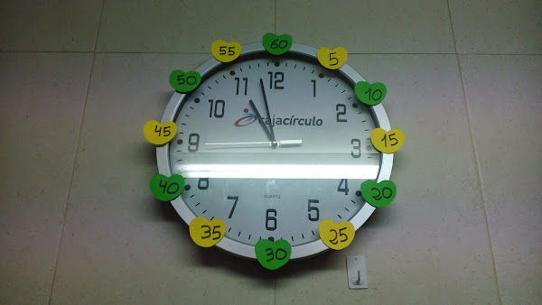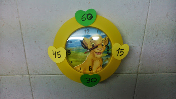 Lo pegamos en nuestro reloj de cocina, así lo tendrán disponible siempre, para consultarlo cuando les preguntemos por la hora.