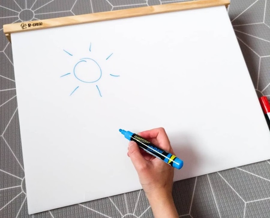 Y por otro lado, es una PIZARRA DE METACRILATO sobre la que podemos dibujar con rotuladores de tiza líquida. Puede colocarse tumbada o de pie y además de para desarrollar la creatividad y la imaginación de los peques enviándoles a dibujar todo lo que se imagen, favor el desarrollo de la escritura y se puede usar para mostrar a los peques lo que pueden hacer en el arenero (números, letras, trazos...), sirviendo como modelo.