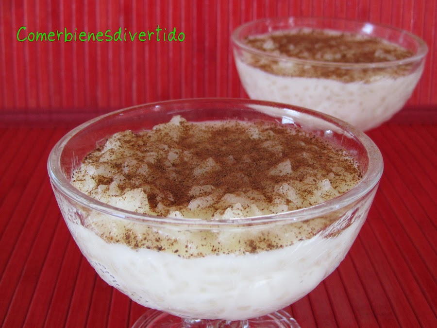 Un postre tradicional, que incluso podemos trasladar a otros tiempos de comida, como la merienda o incluso el desayuno, ya que contiene como ingredientes principales leche y cereales (el arroz), dos grupos de alimentos presentes en estas comidas.