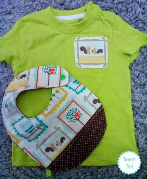 ¿Increíble verdad? Los detalles son alucinantes, cada cosa y cada acabado me enamoraba aún más. Aún por encima, como es tan generosa, hizo un tutorial para enseñarte a hacerlo. Pero la cosa no quedó ahí, también me envió su primer babero, el primero que hace, qué honor!! Que como la señorita no se podía quedar ahí, también preparó una camiseta a juego, pero qué mono que va a estar mi bebé.