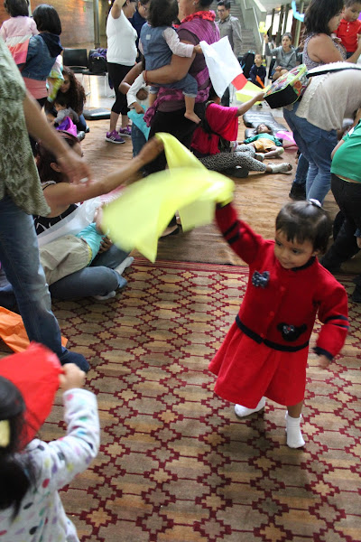 Muy curiosa ella iba y venía, observaba, aplaudia, bailaba, se emocionaba, hubo un momento muy especial en que se recosto y tomo de mi pecho, escucho la música, se relajo por unos minutos y despues volvió a recargar la pila para pararse y abrazarme, leyeron uno de sus libros favoritos que nos han acompañado casi desde el inicio de su vida: Duerme negrito, y claro no podía faltar la canción, todas cantamos y baiamos al ritmo de la hermosa canción, ella bailo sola, sin palabras me dijo, mira mamá, aunque no me estes cargando en este momento mi corazón sigue conectado con el tuyo y aunque bailo por todo el salón te observo, no te pierdo de vista porque para mi eres mi mundo.