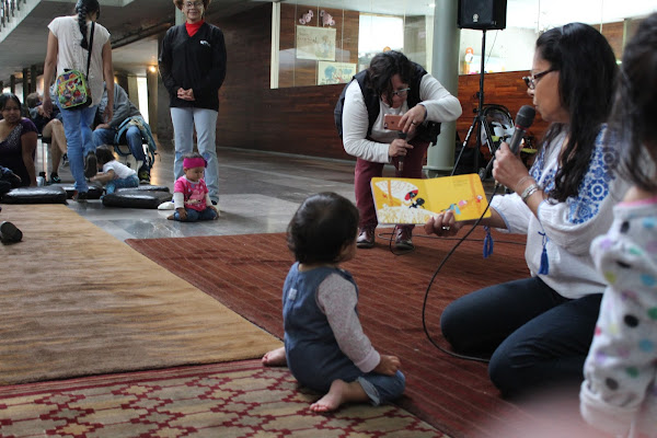 Comenzamos a ir a la Biblioteca Vasconcelos en cuanto se me quito el miedo a andar en la calle con ella, mas o menos a los cuatro meses nos aventuramos a asisitir a las diferentes actividades que se realizaban y fue también por esa época que comenzé con este Blog. Yo tenía mis dudas porque la verdad en mi cabeza no conjugaban bebés + biblioteca, pero ¡oh sorpresa!, existen las bebetecas, y la Biblioteca Vasconcelos es una de las dos bibliotecas públicas en la CDMX que tiene una, recuerdo que en ese entonces ella ni siquiera gateaba. Comenzamos con los talleres de masaje para bebe y despues asisitíamos cada que el clima nos lo permitía a las sesiones de lectura con bebés a cargo de Ruth Galicia.