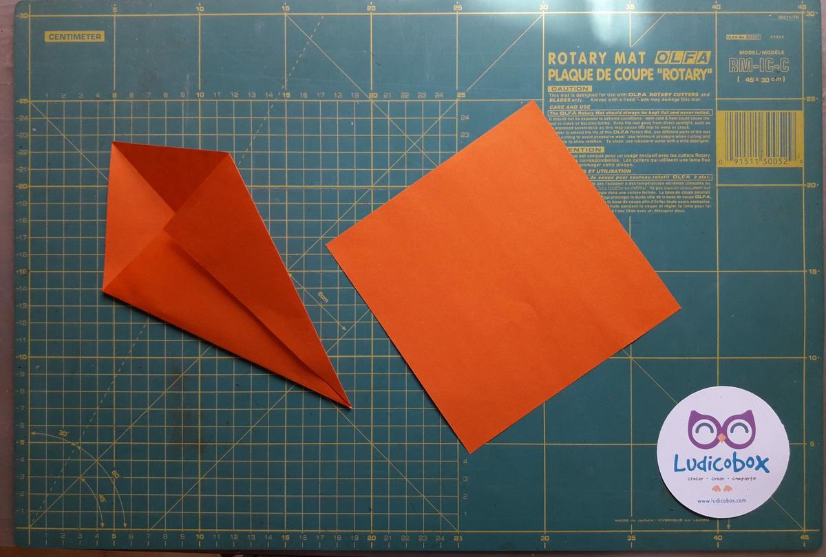 En la cartulina naranja cortar 2 cuadrados iguales, de unos 15 cm x 15 cm.