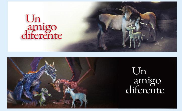 Un Amigo Diferente es un cuento ilustrado en el que se narra la historia de dos pequeños que se pierden en la niebla: uno es un unicornio y el otro un dragón. Se encuentran y se dicen sus nombres, sin aclarar lo que es cada uno. Ambos quieren volver a encontrar a sus respectivos padres y deciden buscarlos juntos y ayudarse mutuamente. Sin embargo la amistad peligra cuando el unicornio descubre que su nuevo amigo es un dragón, un ser contra el que sus padres le han advertido.