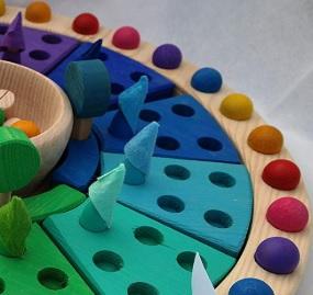 Un calendario waldorf es un calendario circular que muestra muy fácilmente cómo se van repitiendo los ciclos: días, semanas, meses y años.A simple vista me encantó por lo colorido que era, y también me gustó que estubiera hecho de madera. Muy en sintonía con el tipo de juegos que me gusta comprarle. Así que no me lo pensé mucho. Compré este calendario waldorf y a los pocos días ya lo teníamos en casa.