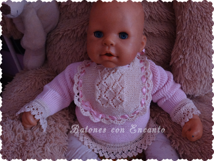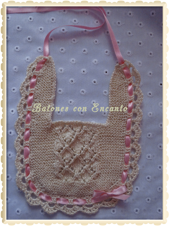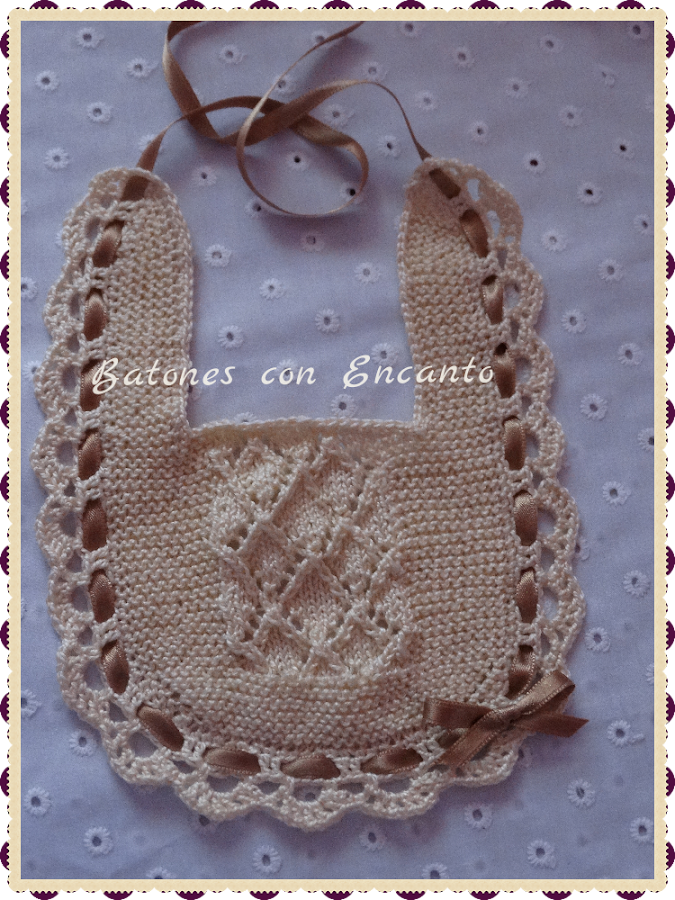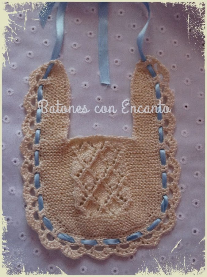Comenzamos la semana con un bonito babero que terminé este fin de semana. Hacía mucho que queria hacer un babero así, con dos agujas, y por fin os lo puedo enseñar.