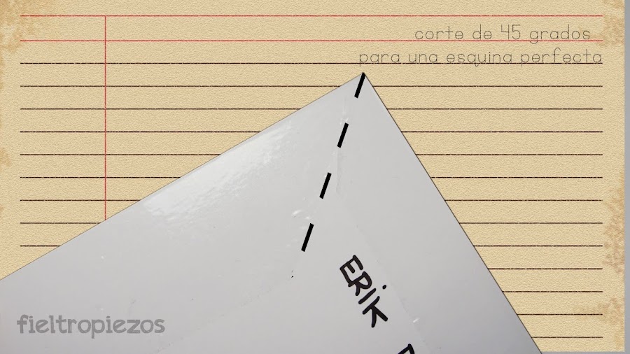 Una vez retiramos totalmente el protector, volvemos al proceso de cortar las esquinas en 45º.