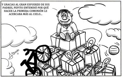 Fe. ¿De verdad que a los peques les mueve la fe cuando hacen la Primera Comunión? ¿De verdad que tienen tan claro sus sentimientos, sus ideas? Y otra pregunta más: ¿Harían esos mismos peques la Comunión si no hubiese fiesta por todo lo alto, listas de regalos en grandes almacenes, vestidos de mininovias y almirantes?
