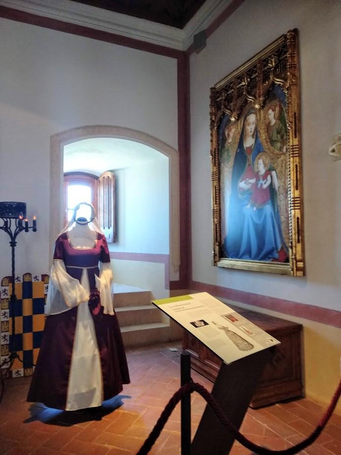 En estas fotos podéis ver varias de las estancias que se visitan, en todas hay explicaciones en carteles y además en la entrada os darán unas audioguías de manera gratuita. A mis hijos esto les chifla desde la visita al castillo de Edimburgo, así que se las adueñaron completamente. Abajo vestimentas, salón y letrinas de la época.