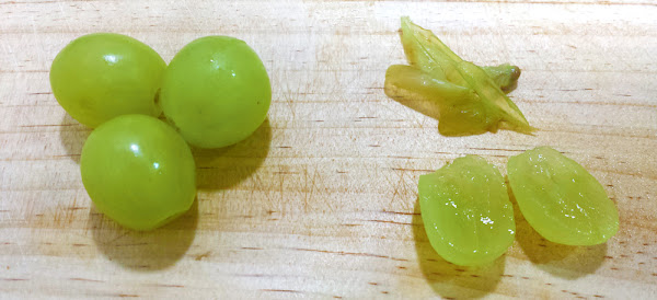 LAS UVAS: Esta fruta suele gustar bastante ya que es muy dulce y la pueden triturar fácilmente con sus encías. En casa las uvas se las damos peladas, deshuesadas y partidas por la mitad. De la misma manera también le preparamos las ciruelas, solo que, en lugar de ofrecérselas partidas por la mitad las cortamos a cuartos. Estas dos frutas tienen un alto contenido en fibra, por lo que si vuestros hijo padecen estreñimiento os recomiendo que se las deis de tanto en tanto ya que les ayudará a regularse.