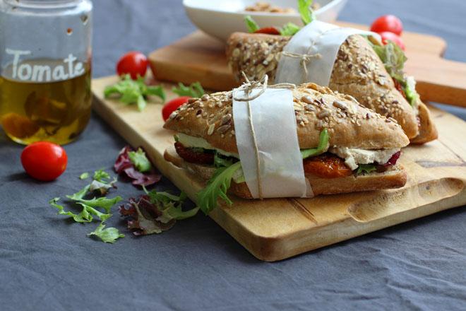 BOCADILLO DE TOFU, RÚCULA Y TOMATES SECOS (receta del libro A vueltas con la tartera)