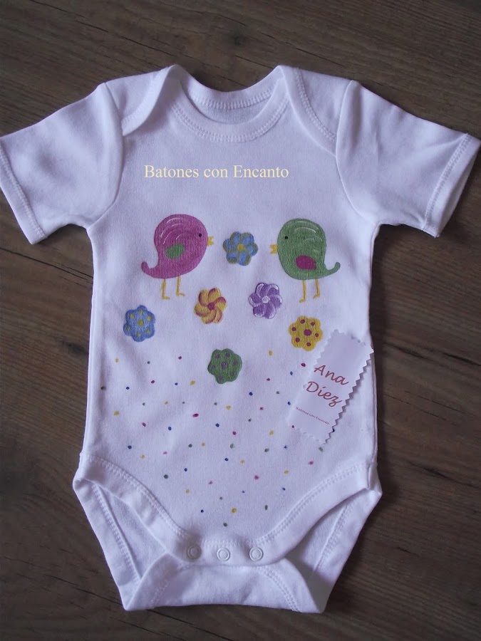 Hoy os dejo unos bodys para bebés pintados a mano con pincel. Se pueden lavar sin ningún problema y siempre se debe planchar del revés para un mejor cuidado.