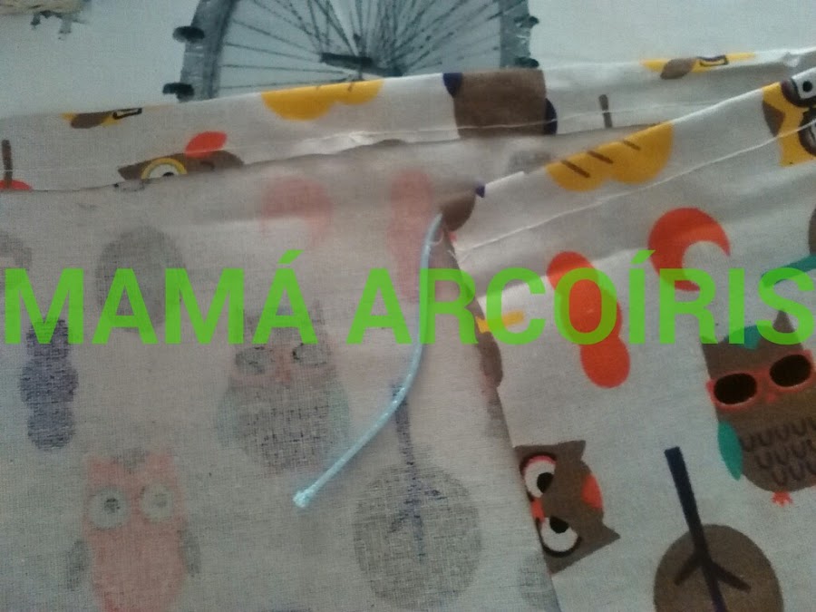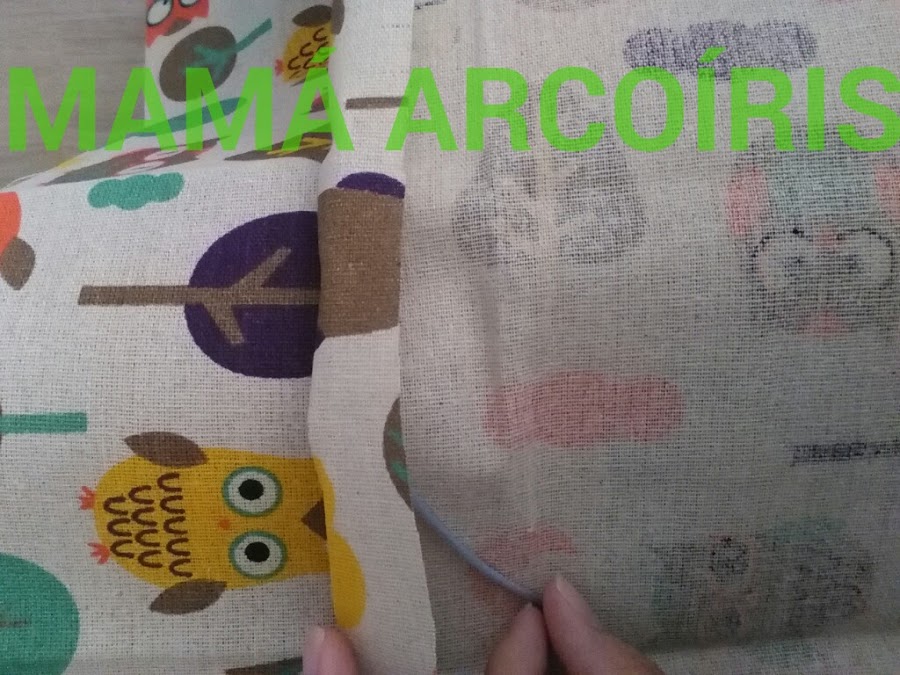 Doblamos la tela a la mitad de manera que la cara del dibujo quede en la parte interna de la doblez. Sujetamos los lados con alfileres y cosemos: