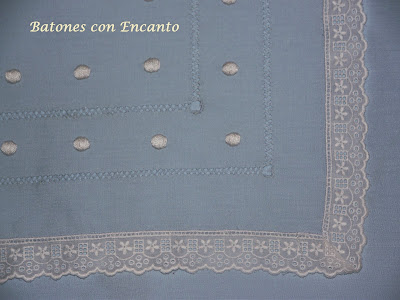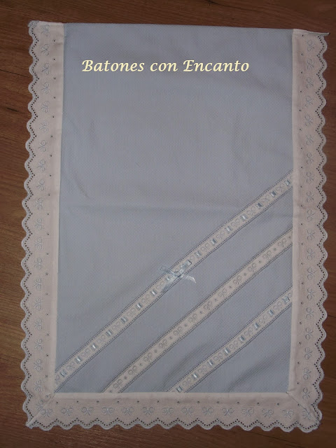 Sabana para moisés y para carrito con panetes,bodoques bordados a mano y calados.