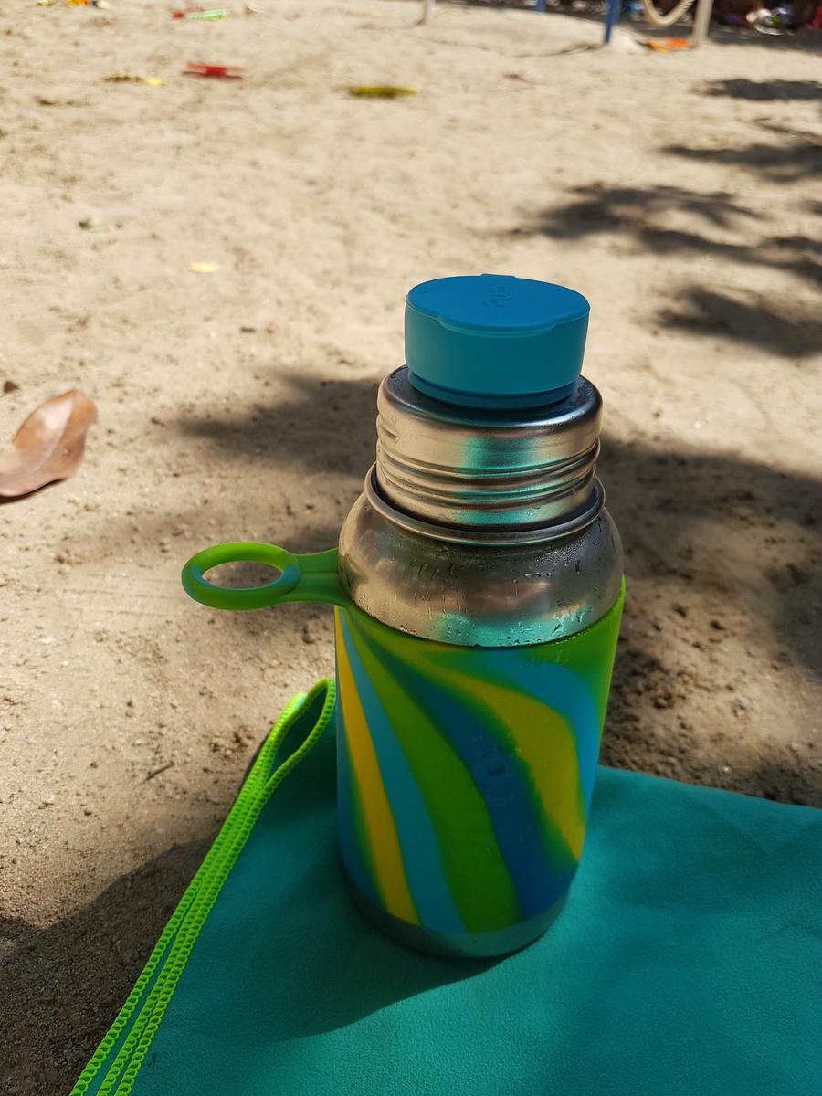 Cuando vamos a algún sitio la mayor siempre se lleva consigo botellas de agua. Y aquí vino mi dilema. No me gusta reutilizar las botellas de plástico del supermercado, no lo encuentro saludable, pero tampoco podemos comprar una para cada día, pues siempre se llevan agua al colegio también. Pero…hemos probado otras botellas plásticas y al final, tienen un olor desagradable cuando pasan muchas horas con agua, o nos olvidamos de lavarlas, o se quedan al sol. Y necesitábamos botellas que fueran de un tamaño óptimo para que las lleven ellas, en la mano, en la mochila o en la bici.