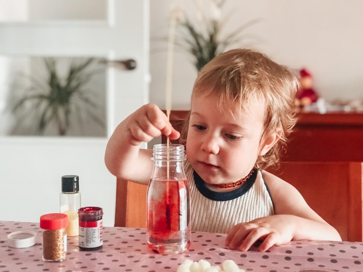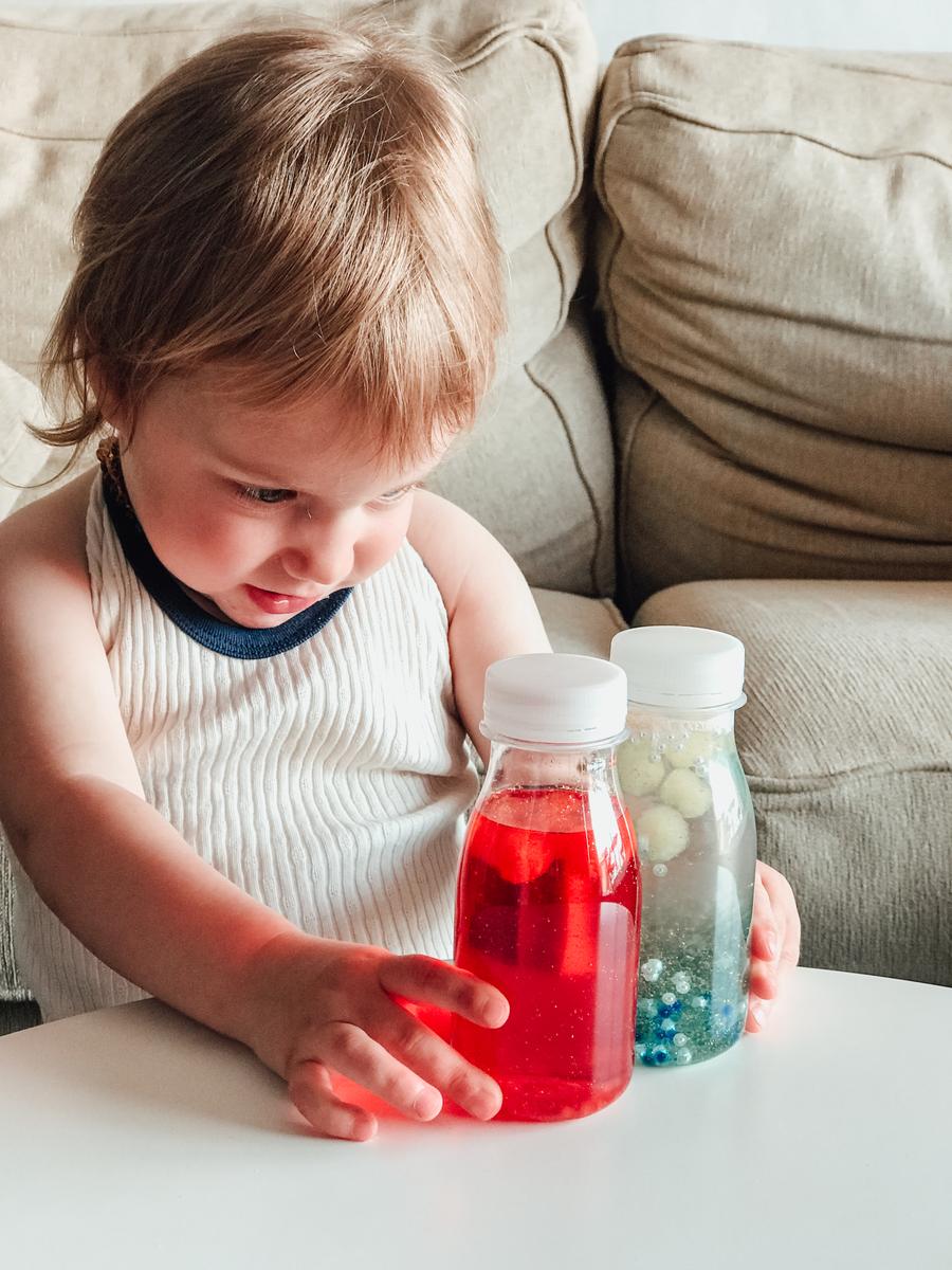 Esta semana estoy non-stop, se nota que tengo un poquito más de tiempo para trabajar tranquilamente. Hoy quería enseñaros otra propuesta que preparé a Valentina. Se trata de elaborar unas botellas sensoriales. Aquí os recuerdo el post que os escribí hace más de un año de las botellas sensoriales de colores. Más sencillas e ideales para usar en la mesa de luz. Os puedo asegurar que las que hicimos todavía siguen dando guerra.