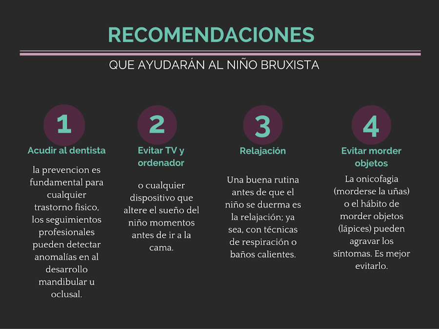 Existen una serie de recomendaciones para que los padres hagan en casa y puedan "suavizar" los problemas derivados del bruxismo en niños.