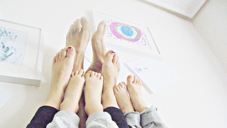 Íbamos a hacer alguna manualidad, PERO... esta mañana, me pidió que hiciésemos fotos a pies, así que pasamos un rato familiar muy, pero que muy divertido: