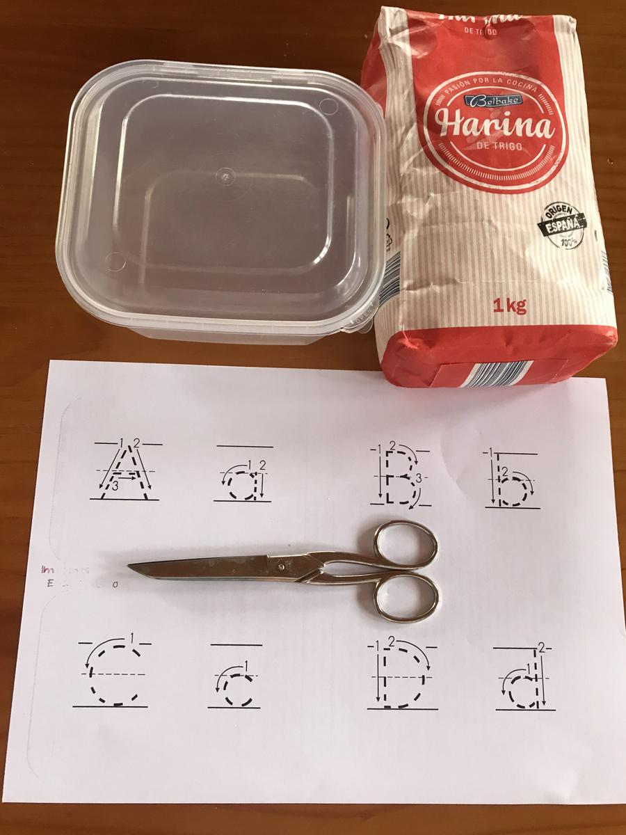 Una vez preparado el material, les daremos el recipiente con arena, sal o azúcar a los peques y les colocaremos al lado del recipiente la tarjeta con la letra del abecedario que queremos que trabajen primero, lo hacemos nosotr@s y después le guiamos con su dedo para que realice el trazo sobre la tarjeta. Los peques deberán observar bien la forma de la letra y reproducirla escribiéndola con su dedo en la arena/sal/azúcar.