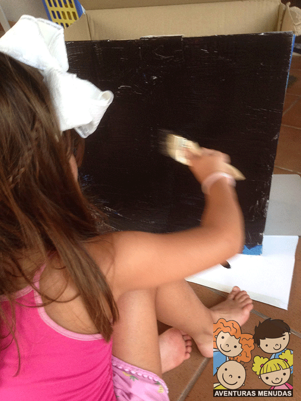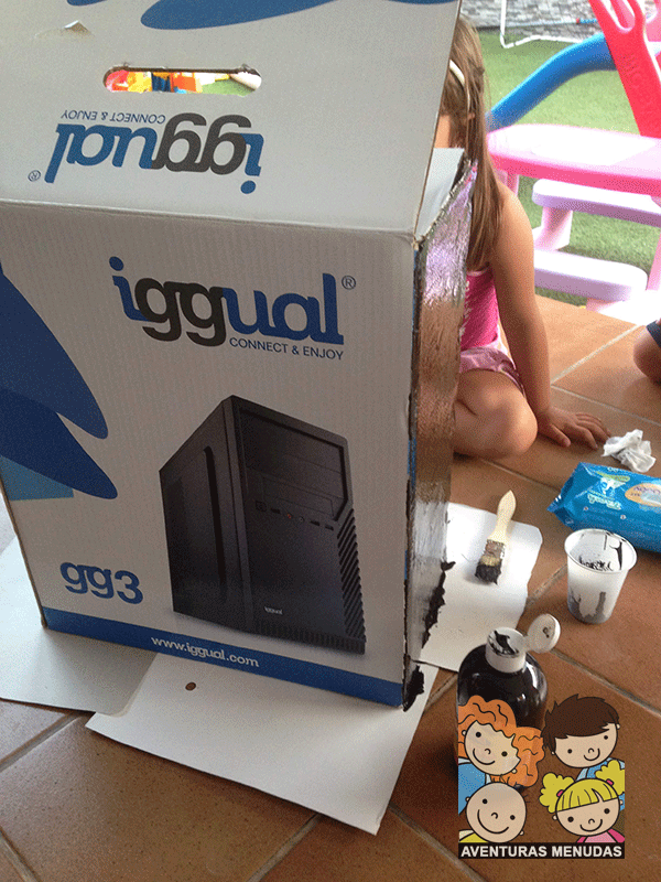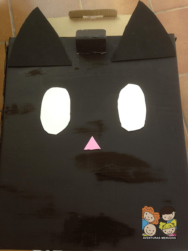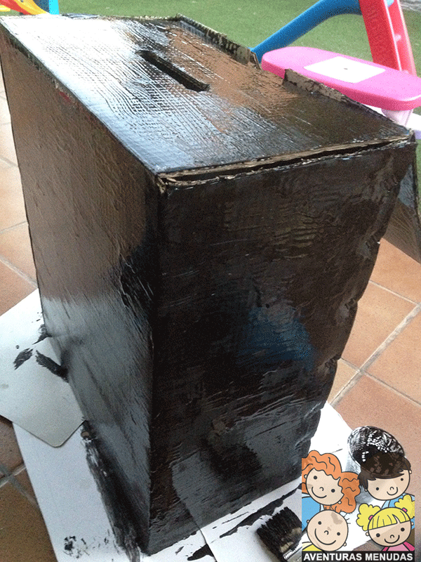 Lo siguiente, pintar toda la caja de negro, ya que en este caso el gatito va a ser de ese color.