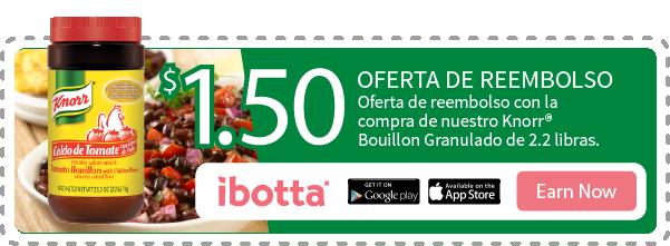 Lo mejor es que esta versión de Knorr Caldo de Tomate con Sabor a Pollo 2.2 lb (Granulado) la puedes encontrar fácilmente en cualquier Walmart, solo con dirigirte a la sección de Hispanic Foods o Comidas Latinas y ahí sin falta la encuentras a muy buen precio. Como mamás sabemos que cada centavo cuenta, y ahorita no te puedes perder de la oferta que está ofreciendo Ibotta. Bajala ahorita para que no se te escape.
