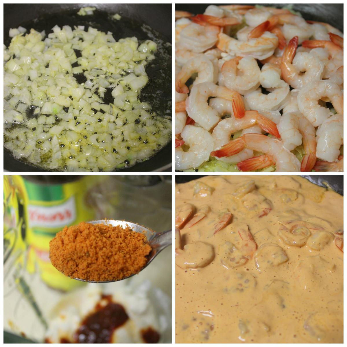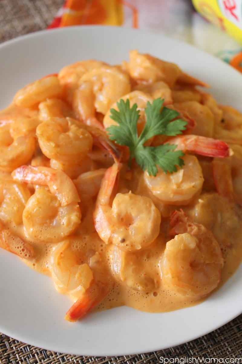 Agrega la salsa al sartén con los camarones. Mezcla y deja cocinar a fuego bajo de 5-10 minutos. Y listo!