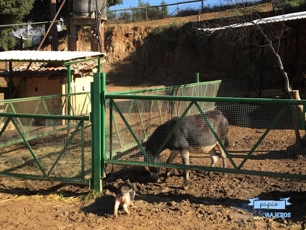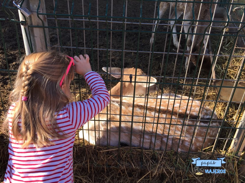 Llegamos el sábado por la mañana a eso de las 11h y nosotros mismos fuimos a dar una vuelta por la granja. La verdad es que mi hija, que no es muy de campo que digamos, le gustó ver cabras, cerdos, ovejas, gallinas... Pero no sólo tienen los típicos animales de granja, también tienen cebras, gamos (¡Bambi!), avestruces... también tienen zona de aves y un pequeño estanque.
