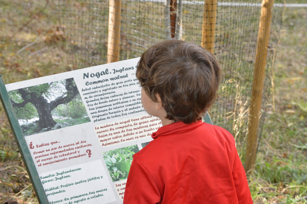 Álvaro ya ha comido nueces y es que su abuelo tiene un Nogal. Le llamó la atención el cartel y estuvo “leyendo” la información para enterarse bien de todo.