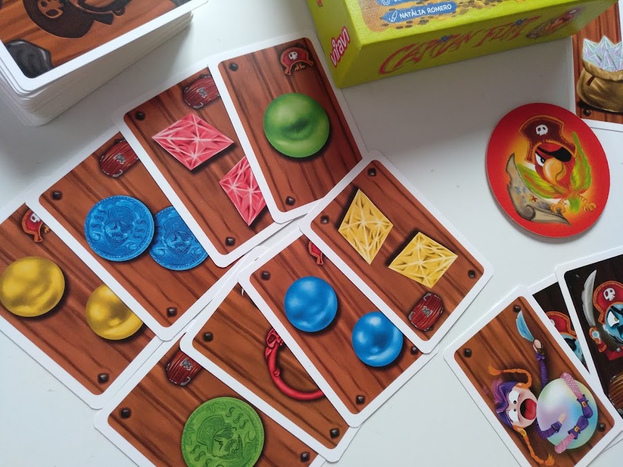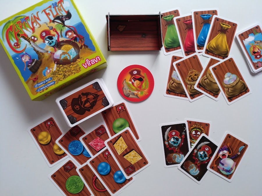 85 cartas de tesoro (80 de joyas, 4 de piratas y 2 de Capitán Flint)