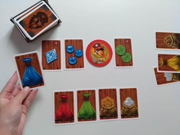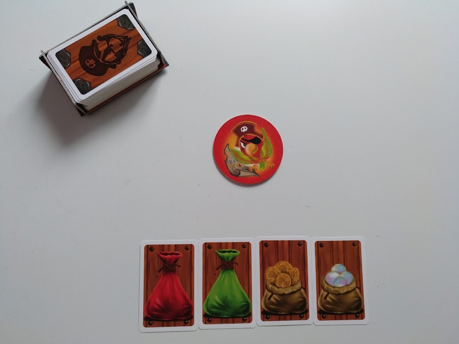 Para ello disponemos de 4 cartas con sacos para poder recoger nuestro propio botín. Como solo dispondremos de 4 cartas de saco para toda la partida tendremos que hacer un buen uso de ellas y llenarlos con el máximo botín posible.