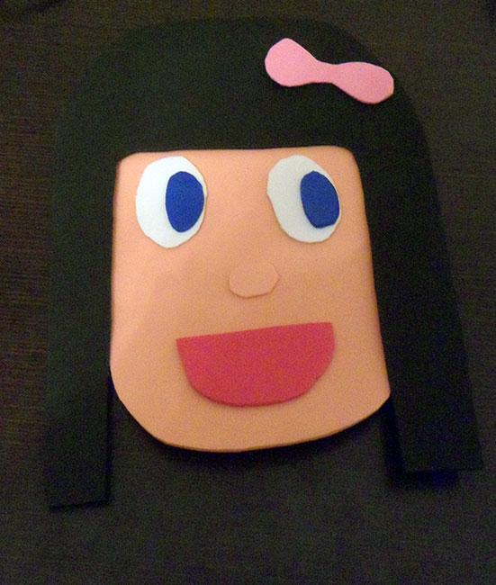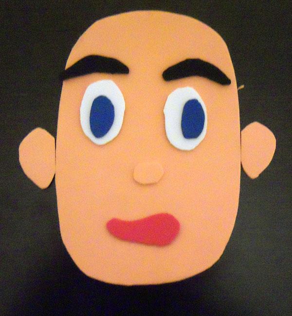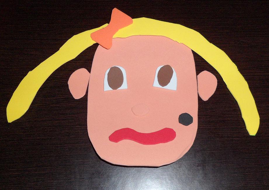 Lo siguiente que recorté, fueron óvalos pequeños para la nariz, por supuesto, color carne y color marrón, y círculos negros para pecas o como alternativa a las pupilas azules y marrones.