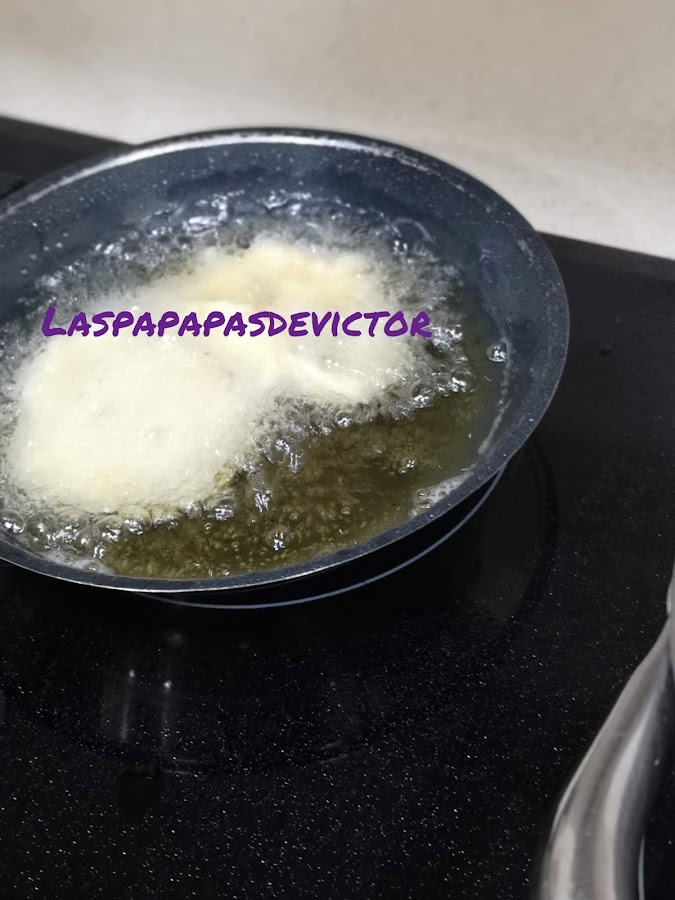 Freír en aceite, sacar y poner en un plato con papel absorbente para que absorba el aceite sobrante