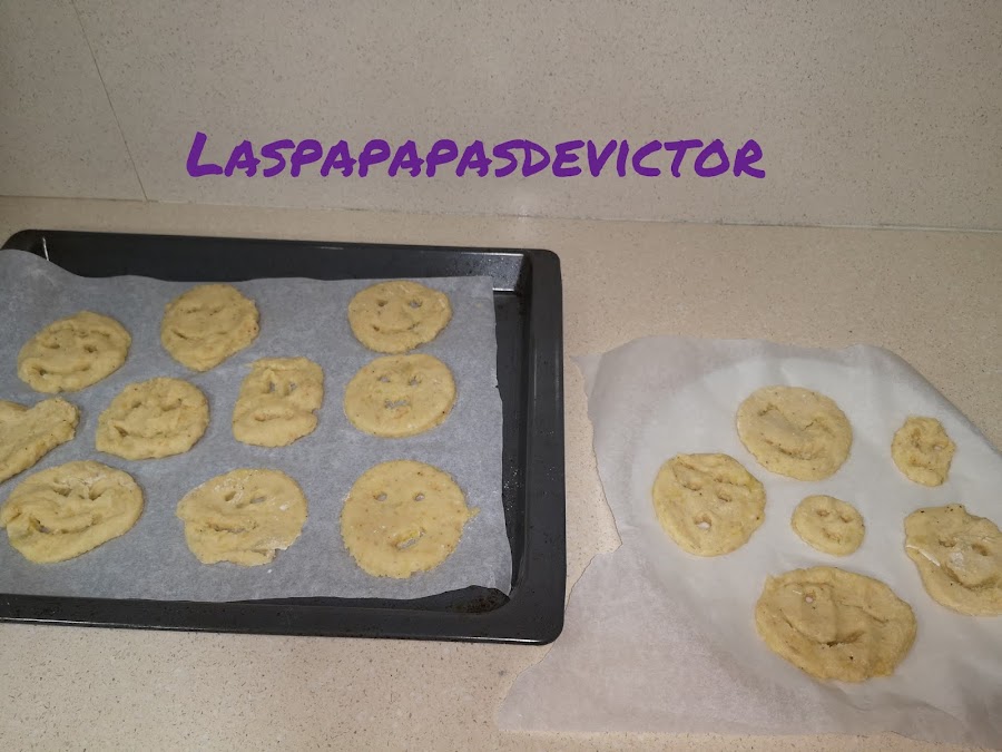 Ponerlas en una superficie con papel de horno y formar los discos y las caras