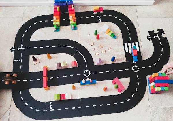 Se trata de un conjunto de piezas que se unen a través de un encaje y que permite enriquecer muchísimo el juego simbólico de mini mundos haciendo llegar una carretera a casas, árboles, puentes o montañas. Waytoplay hace que todos los elementos complementarios coches, personajes, árboles, señales de tráfico e incluso elementos naturales (agua, arena, piedras...) sean mucho más divertidos.