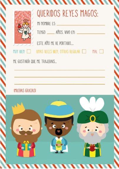 Dile a tu hijo que elija su carta a los Reyes Magos y descarga el pdf. Que la complete con sus peticiones y pegue fotos de juguetes en ella o la decore con más dibujos. Sólo quedará echarla al buzón de sus majestades de Oriente.